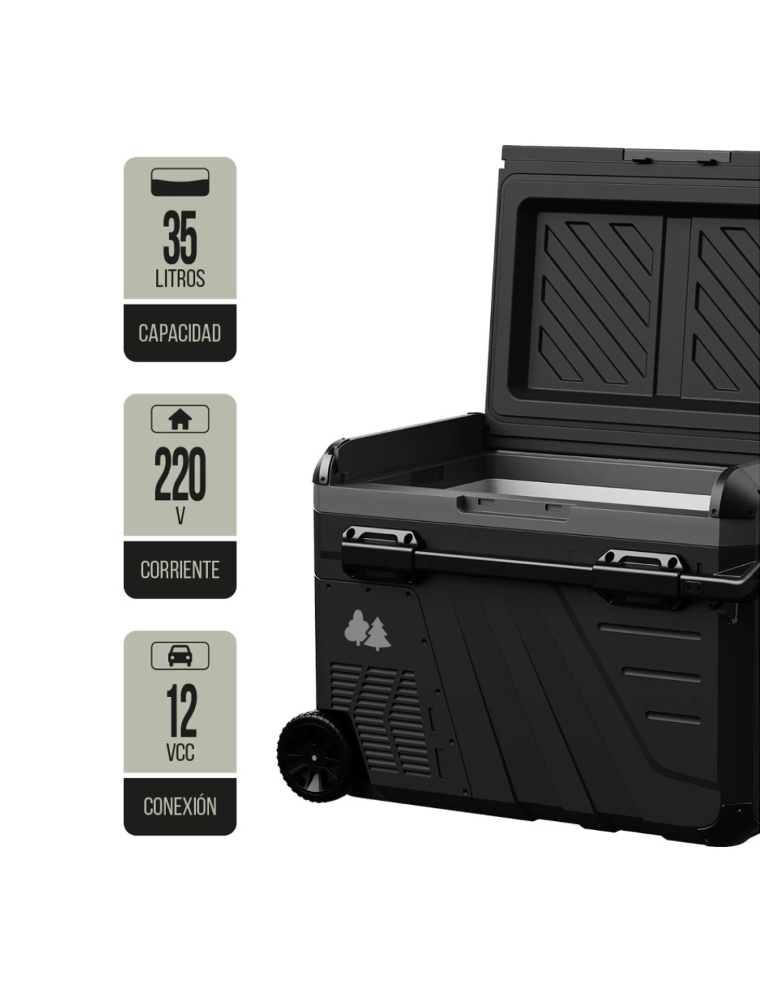 Heladera portátil Terra Outdoors 35L – Versatilidad y comodidad en cada viaje Descubrí la heladera portátil Terra Outdoors con capacidad de 35 litros, diseñada para mantener tus alimentos y bebidas frescos o congelados en cualquier aventura. Ideal para el auto, camping o escapadas al aire libre en Argentina. Características principales: Capacidad y tamaño ideal: 35 litros con dimensiones compactas de 70,5×44,4×44,2 cm, perfecta para transportar sin complicaciones. Alimentación flexible: funciona con corriente DC 12/24V para vehículos y cable de 220V para el hogar o cabañas, todo incluido. Rango de temperatura amplio: ajustá la temperatura desde -20°C (freezer real) hasta 20°C para conservar alimentos y bebidas justo como los necesitás. Display digital: controlá y monitoreá la temperatura con precisión gracias a su panel digital intuitivo. Bajo consumo: potencia de solo 65W, eficiente y económica. Refrigerante ecológico: utiliza R134a, respetuoso con el medio ambiente. Movilidad mejorada: equipada con ruedas resistentes y manija retráctil para facilitar su traslado. Diseño funcional: tapa con posavasos incorporados para mayor comodidad. Funciones destacadas: Enfría y congela con control grado a grado, adaptándose a tus necesidades. Compatible con diferentes fuentes de alimentación sin necesidad de adaptadores adicionales. Panel digital para configurar la temperatura y verificar el rendimiento en tiempo real. ¿Por qué elegir la Terra Outdoors? Portabilidad total: su sistema de ruedas y manija regulable facilita llevarla a cualquier lugar. Versatilidad única: se adapta a múltiples usos, desde heladera hasta freezer. Lista para usar: incluye cables para auto y hogar, lista para acompañarte en tus viajes. Ideal para múltiples actividades: camping, pesca, playa, rutas largas o en caso de cortes de luz. Con la heladera portátil Terra Outdoors, disfrutá de la mejor conservación de tus alimentos y bebidas en cada salida. ¡Llevá confort y practicidad a donde vayas! ¡Comprala ahora y convertí cada viaje en una experiencia fresca y cómoda!